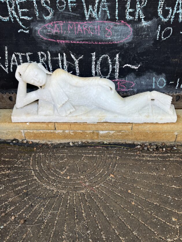 SKU 9152. Alabaster reclining Buddha, solid white Alabaster marble,