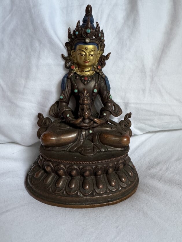 SKU 9202, Bronze Amitabha Buddha, gold gilt Face, 9″ X 4″ X1.5″ , 1.5 lb.