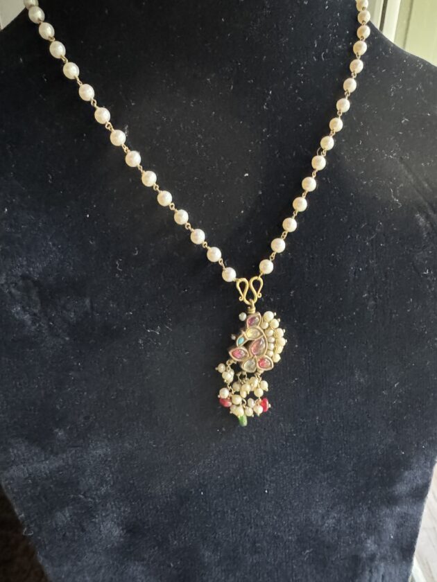 Bird Pendant on pearl necklace