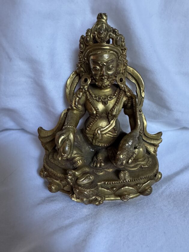 SKU 9201. Bronze gold gilt, Kubera, god of wealth, size : 4″ X 3″ X 2″ , 7lb weight, $1200-