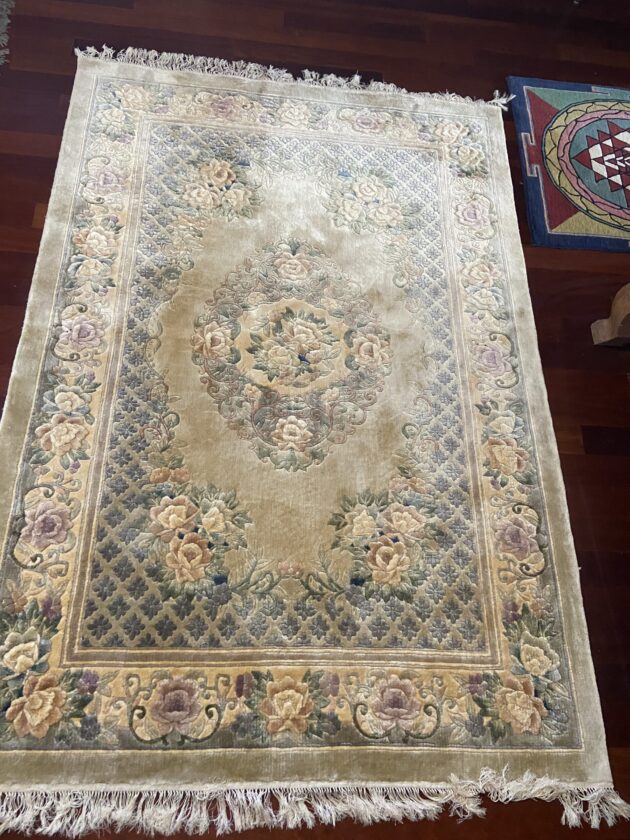sku 0555 Hand carved silk and wool raised carpet 6′ X 4′ Beautiful Floral design. Like walking on a cloud.