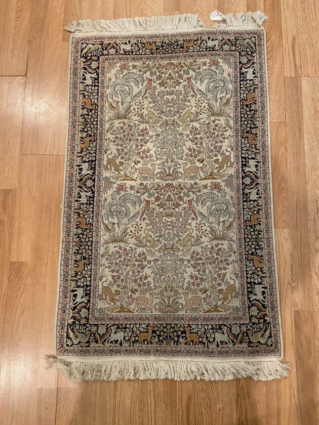 SKU 0385. Kashmiri silk Hand knotted Carpet size 29″ X 2.5′