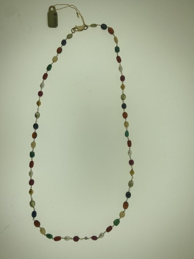 SKU 6879 18K gold wire strung Navarathna Necklace with Diamond Pendant.