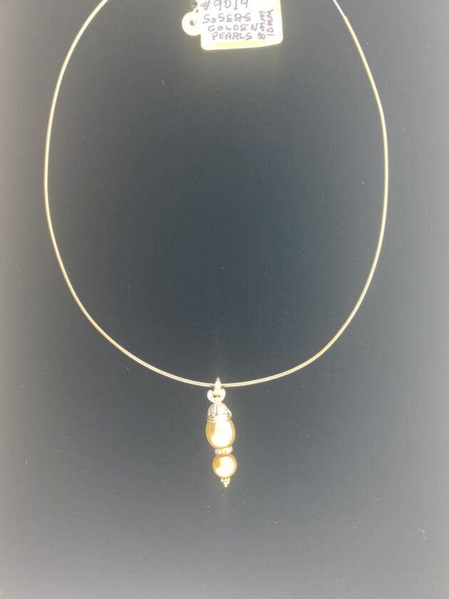Strung on an 18K Gold wire Necklace , the golden Pearl Pendant of 10mm & 8mm is set with a