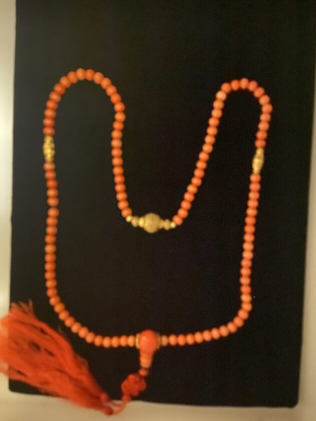 SKU 7013 18K Red Mediterranean Coral bead Mala , 22″ ,  24mm beads bright Red color.
