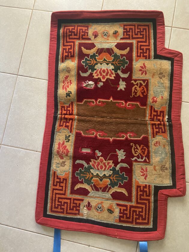 TS104 Tibetan Saddle Blanket, 4’X3′ wool, Floral design, $500-
