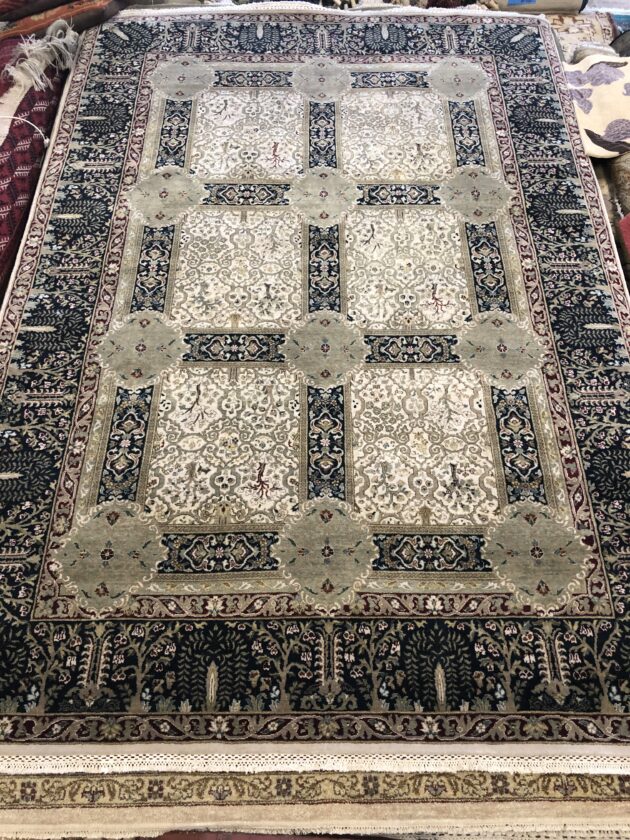 SKU 0444 Asian hand knotted Wool carpet , six square design, 9′ X 6′, $4500-
